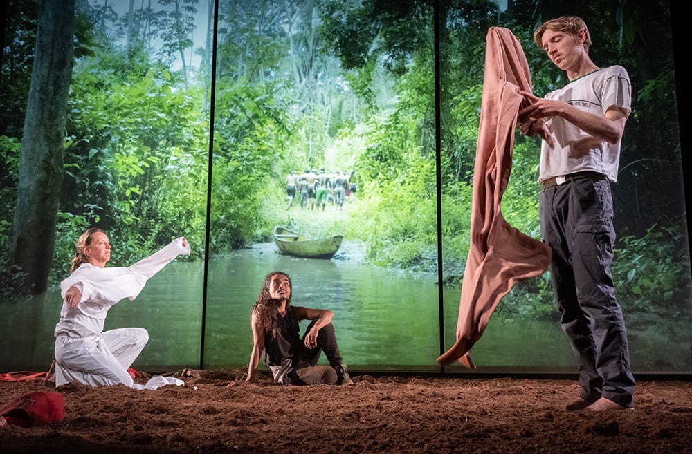 為了質疑西方文明對他國的影響及探索歐州文化產業的效能,他將劇場創作擴延至全球爭議的前線。《奧瑞斯在摩蘇爾》(Orestes in Mosul,2018)帶領被伊斯蘭國迫害的民眾排演希臘悲劇,以詢問他們是否願意泯滅仇恨、攜手重建家園。(註1)《新福音書》(The New Gospel,2020)則深入義大利南部,透過偽紀錄片形式結合耶穌受難的故事和難民受剝削的處境。《安蒂岡妮在亞馬遜》則是這一系列《上古神話三部曲》(Trilogy of Ancient Myths)的最終章。