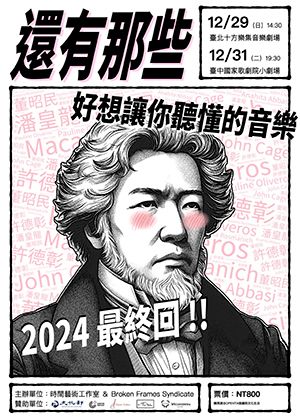 時間藝術工作室攜手德國Broken Frames Syndicate當代樂團,12月31日將在小劇場推出《還有那些好想讓你聽懂的音樂》音樂會,以二戰後的當代音樂為主題,精選音樂史上重要的經典,包括美國作曲家John Cage與Pauline Oliveros的作品,並推介近年在德國十分活躍的作曲家Jonah Haven(美國)與Elis Hallik(愛沙尼亞)給臺灣觀眾認識,也挑選潘皇龍、董昭民、許德彰等3位不同世代臺灣作曲家作品,聽見臺灣與歐洲當代音樂的交融。今天記者會上,藝術總監吳正宇、團員王冠傑、團員陳羿岑、團員李臺軒也別開生面的手持傳統收音機,詮釋John Cage的經典作品〈Radio Music〉。