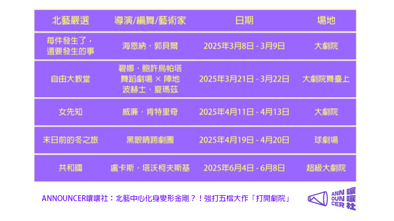 2025年,臺北表演藝術中心推出 #北藝嚴選 #TPAC SELECT,1月4日下午 17:00 還附上「嚴選直面會」,在 Youtube 和 Facebook 皆可觀賞,趕快趁 1月6日 12:00 開賣之前好好選節目吧!