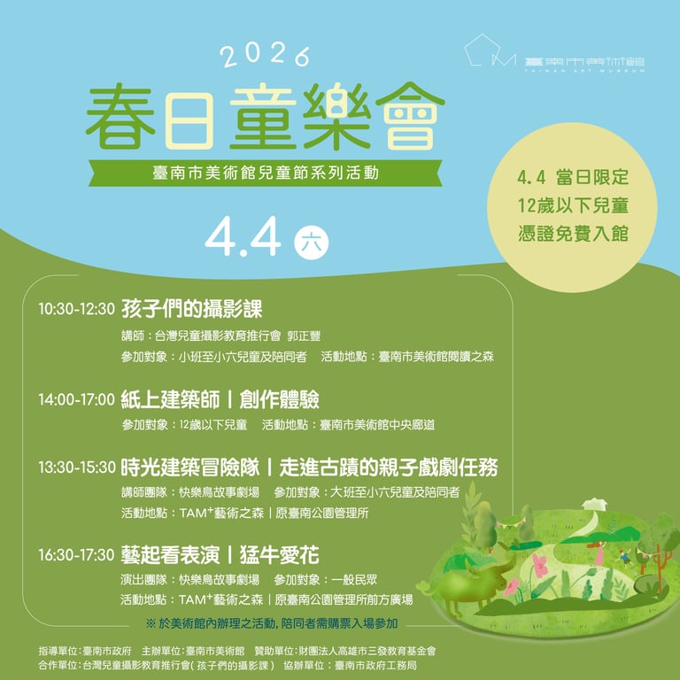 - 臺南市美術館 2026春日童樂會—兒童節系列活動 🔗