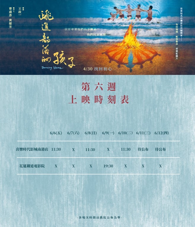 (6/6更新)《 跳進部落的孩子 》奇蹟撐到第6週!電影院院線檔期:喜樂時代南港、花蓮鐵道電影院,第6週 6/6 至 6/12 持續上映中!