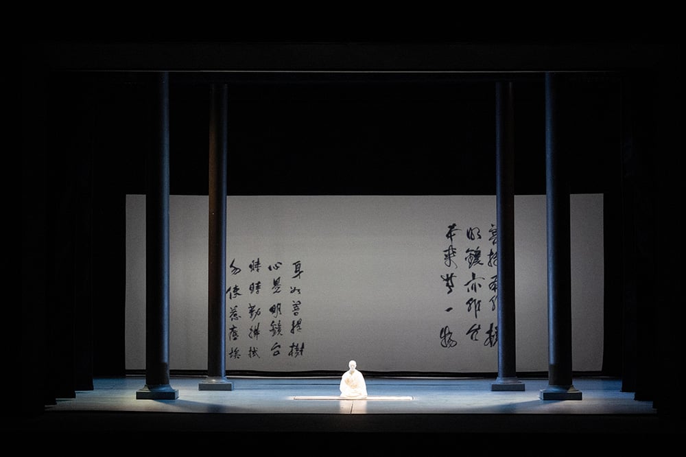 那年,聶光炎將邁入70之齡,設計能量和創造力卻豐沛得令人震懾,一年內有4齣劇場作品——《金大班的最後一夜》(果陀劇場)、《長生殿》(台灣歌仔戲班)、《閻羅夢》(國光劇團)及《八月雪》——舞台設計都出自他手。20年過去,這些作品鮮能再度於劇場被觀看,只能從劇團影像記錄、舞台模型和聶光炎保存的設計圖稿,想像場中線條光影與演員互動交織而成的氛圍。一思及此,復刻於舞台上轉瞬即逝的慧能偈語,引發的觸動與其說了悟,毋寧更近於惆悵。