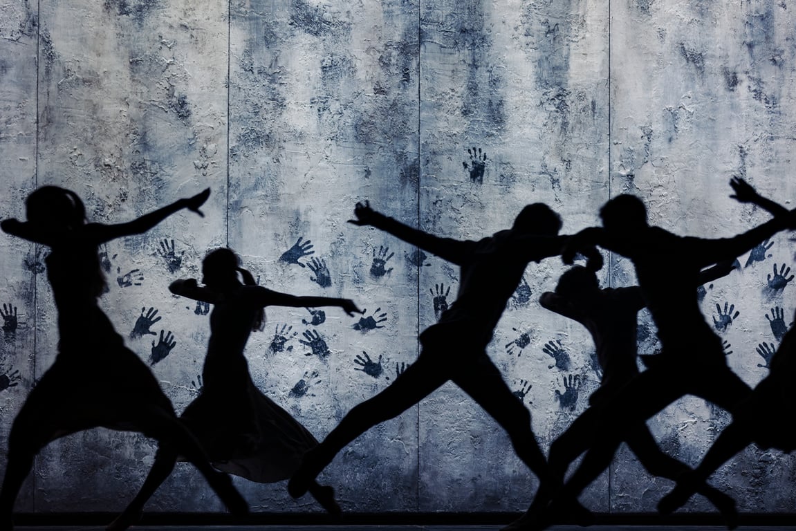 換景時,舞台上的巨牆多次翻轉,產生意義上的隱喻。那道牆隔離了階級與權力、誓言與謊言、地上與地下、肉體與靈魂。