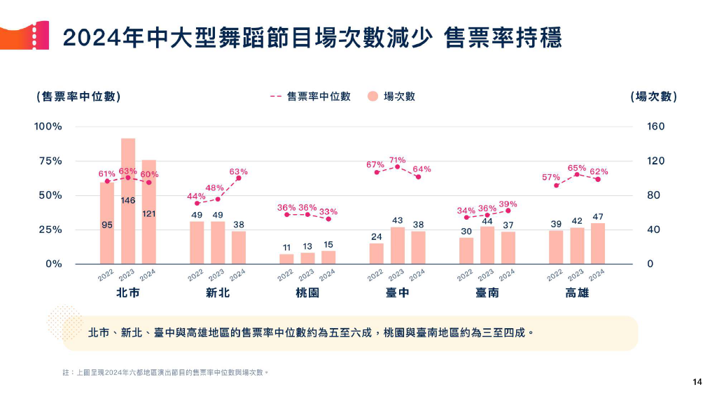 (圖 報告P.14 2024中大型舞蹈節目場次數減少,售票率持穩)