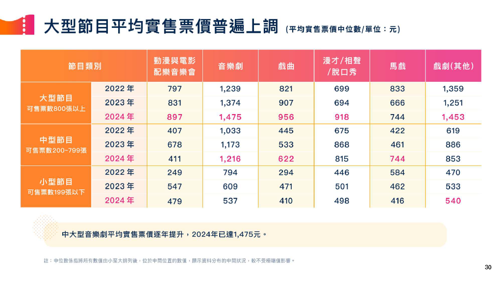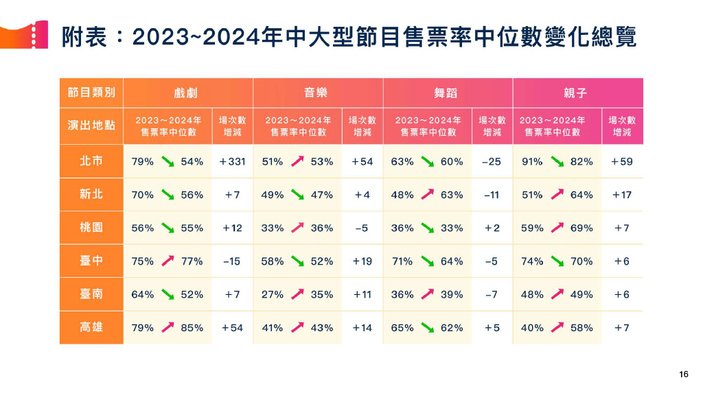 (圖 報告P.16 2023~2024年 中大型節目 售票率中位數 變化總覽)