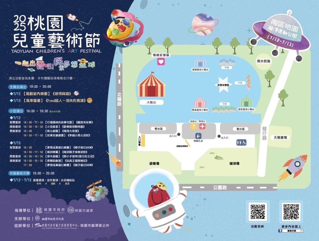 上週末的《流浪狗之歌》大家是不是開心又感動?本週末 ( 7 / 12 至 7/ 13 ),桃園兒童藝術節的南區主題活動,即將在龍潭區的龍潭運動公園展開,還有更多精彩活動,讓孩子可以隨著最可愛的五力藝文精靈,從不一樣的角度接觸環境、嘗試全新體驗,一起探索夢想星球!豐富活動詳情請上「桃演本鋪」臉書粉絲專頁 或 桃園兒童藝術節活動官網 查詢。