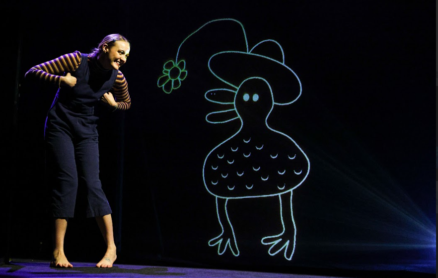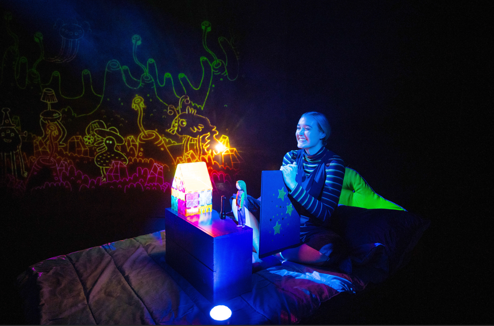 靈感來自繪本名作《阿羅有枝彩色筆》(Harold and the Purple Crayon),劇中原本的小男孩與神奇紫色蠟筆,在改編中成為一位女孩與一顆神祕的小光點。女孩在黑暗中邂逅光點,兩者互動的過程激發出一連串冒險與創造,展現出孩子面對未知時的好奇、勇氣與想像力。最特別的是,觀眾在進場時將獲得一盞小燈,演出過程中會隨著劇情發展,成為故事中的一份子——手中的燈是進入魔法世界的通行證。