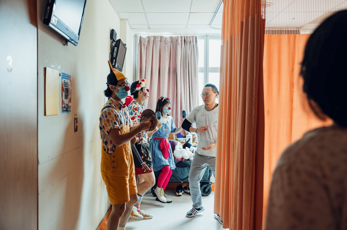 紅鼻子醫生的工作遠不止於表演,他們是溫度的傳遞者,有時還能根據病患的病情、身心狀態及現場氛圍,設計出獨特的互動演出,紓解身心的病痛與壓力,為醫院注入人性的溫暖。從新生兒到高齡長者,從加護病房的病患到焦慮無助的家屬,甚至壓力沉重的醫護人員,紅鼻子醫生都能以他們的專業與熱情,為每個人帶來專屬的快樂時刻。