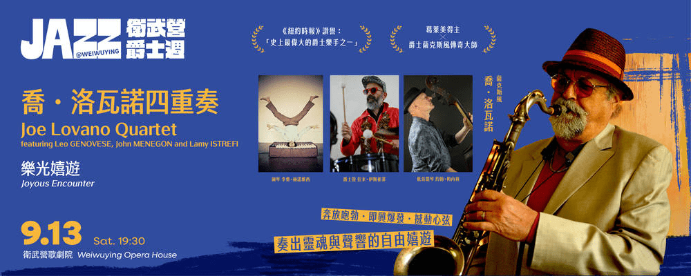 率先介紹的,是榮獲葛萊美肯定的薩克斯風演奏家、作曲家喬·洛瓦諾(Joe LOVANO)。