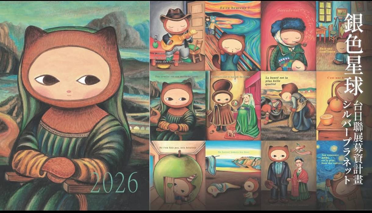 任何長期的藝術創作都不是輕鬆的行動。「銀色星球」系列創作,在過去三年半來單靠著眼球愛地球工作室與台日各縣市在地夥伴努力完成,沒有固定補助,更多時候是藝術家自己出錢出地。面對即將到來的人吉市展覽,眼球先生利用自己的繪畫作品—名畫系列,製成2026年桌曆作為籌款方式,邀請大家成為這段旅程的支持力量。