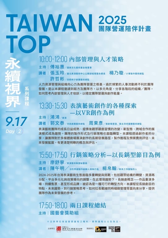 完整課表—藝術行政免費進修!香不香?國藝會「團隊經營課」再度登場!【2025 TAIWAN TOP #永續視界】
