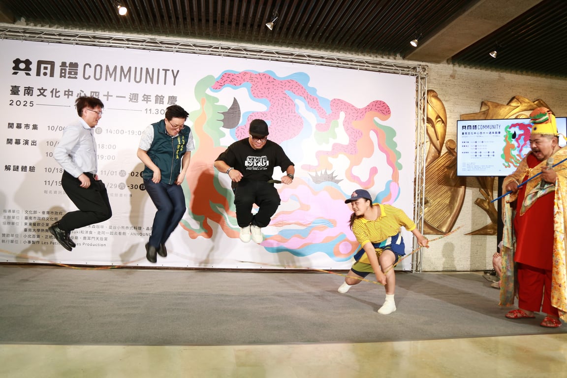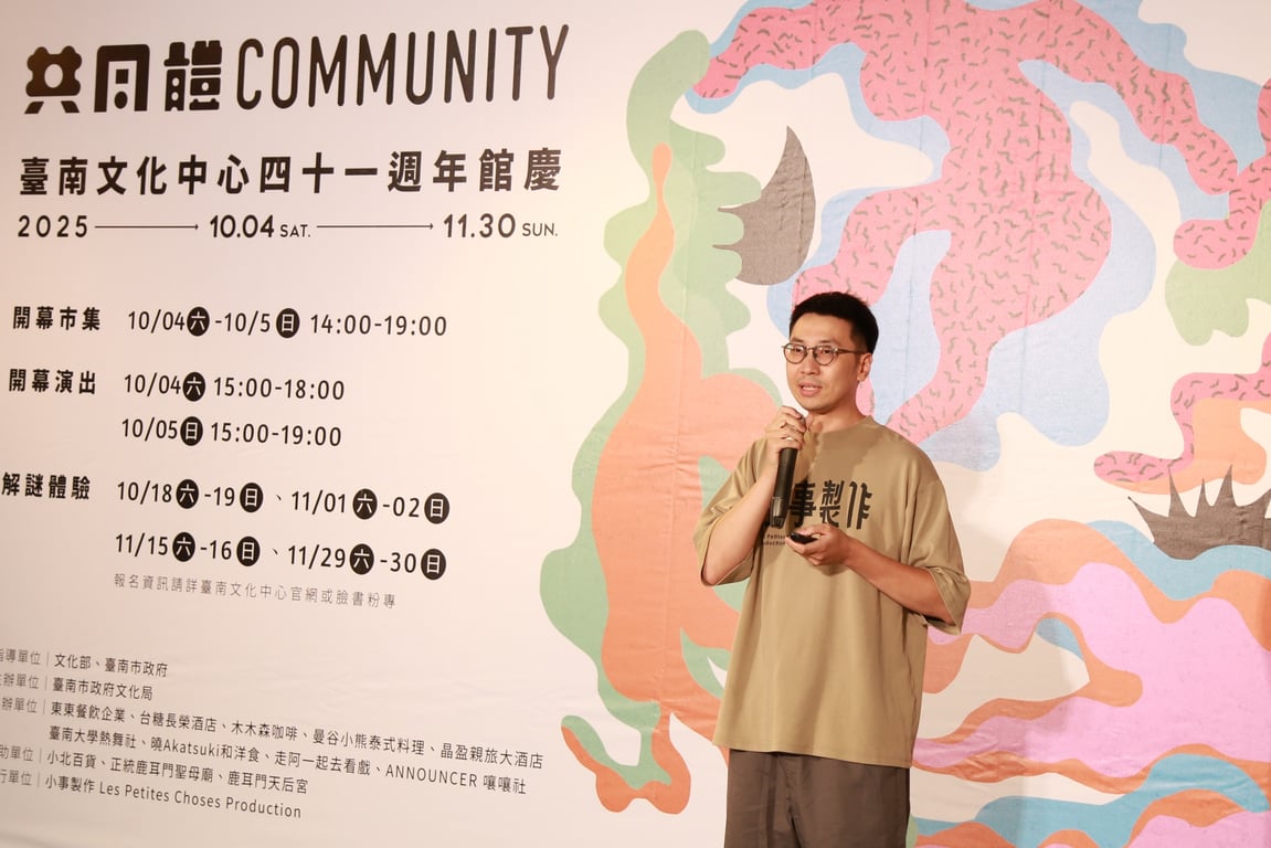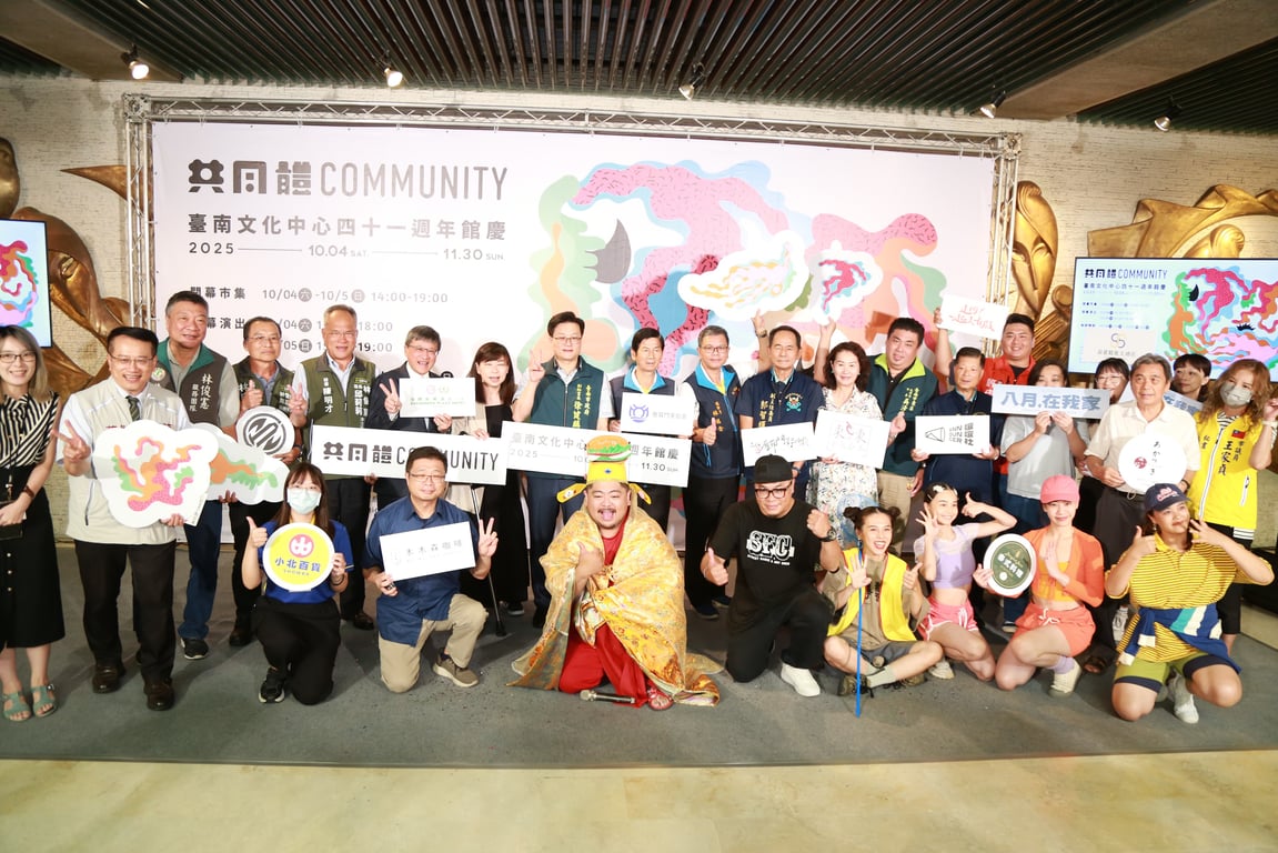 市府副秘書長徐健麟說,臺南文化中心不只是一棟建築,41 年來早就成了市民共同的文化記憶。文化局專門委員方敏華也強調,今年的主題「共同體」,就是要讓文化場域和大家的日常連在一起、一起創造。