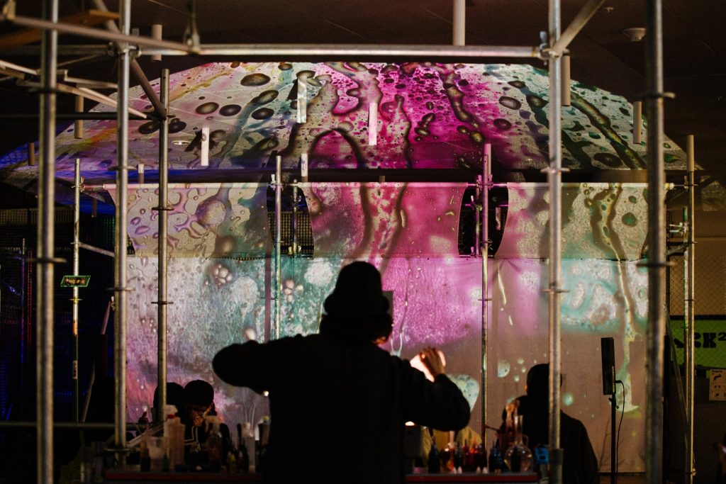臺、韓共同合作的節目《光影音樂會》,由音樂家共組的「리 Trio弦樂與鋼琴三重奏」和油水投影藝術家「白油」現場即興創作。圖/藝術家提供