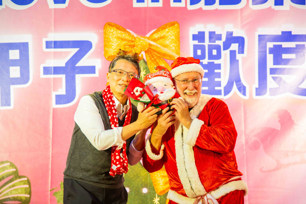 【大成報記者杜忠聰/臺南報導】隨著聖誕佳節腳步將近,嘉南藥理大學於12月9日起推出一系列聖誕禮讚活動,並於10日晚間盛大舉行「粉亮甲子 歡度聖誕」點燈儀式,不同於傳統的聖誕節的紅綠配色,今年特別以象徵柔和、包容與希望的粉色系為主色系,呼應學校即將邁向一甲子的輝煌歷史。在璀璨燈火下,校長張翊峰代表全校師生,向嘉藥「永遠的聖誕老人」—Gary老師致上最深敬意,感謝他多年來為校園帶來的歡樂,場面溫馨感人。