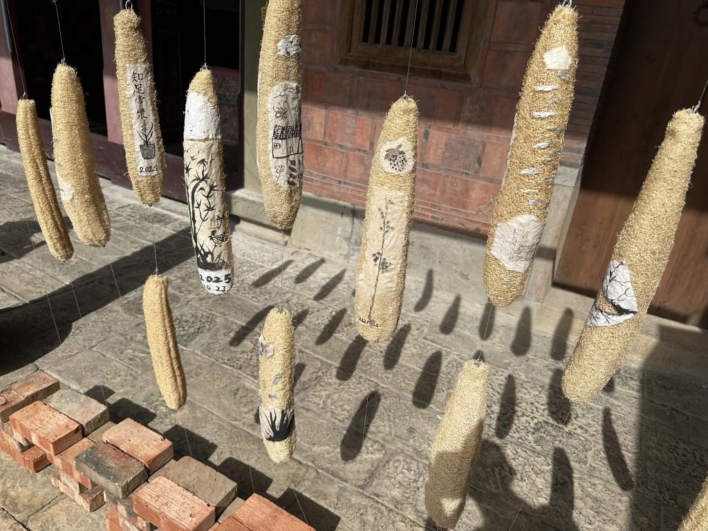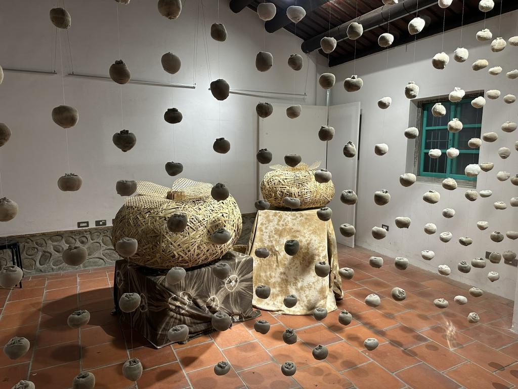 這屆藝術季,玄奘大學藝術與創意設計學系以共創參展單位身分,與旱坑社區合作展出《好柿連連》與《柿柿如意》兩件公共藝術作品,展出地點為張氏家廟。玄大藝創系主任翁梁源表示,「兩件作品的創作並非從形式出發,而是從走進社區、傾聽地方故事開始。師生透過實地踏查柿餅場、宗祠與生活場景,理解柿子在新埔日常中的角色,並在指導老師陳欣琪的帶領下,運用柿餅產業產製的柿皮煮染,將地方記憶轉化為可被觀看與感受的藝術形式」。