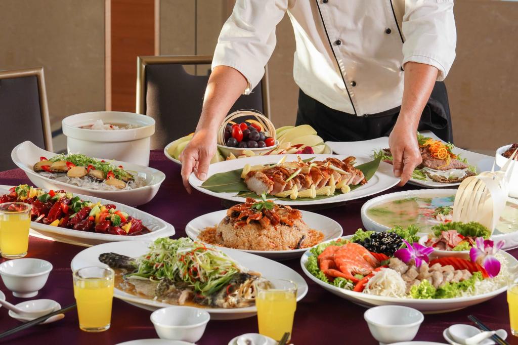 餐廳嚴選海陸珍饈打造西式半自助套餐,680元起即可享用一份主餐及自助吧多元佳餚。另有中式10人份桌菜16,800元起,匯集多道經典菜色,包括柚子醬沙律龍蝦、蒲燒海鰻米糕、養生燉雞湯等,提供豐盛年節餐桌選擇。