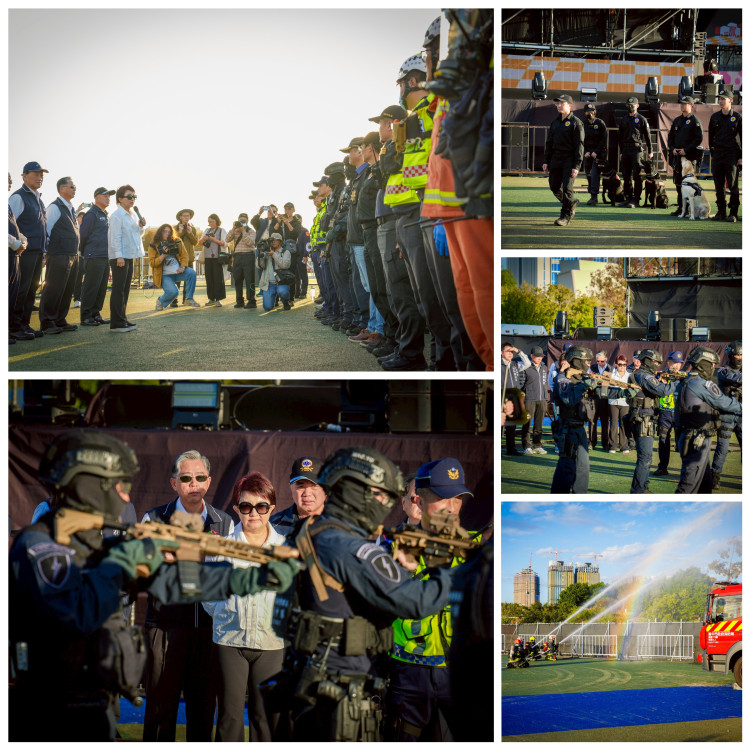 這次維安演練共分5大部分,包括事前場地與設備全面安檢、大量人潮疏散演練、多元型態危機應變、特警即時壓制危險狀況,以及煙火施放安全管理,確保各環節皆能滴水不漏。