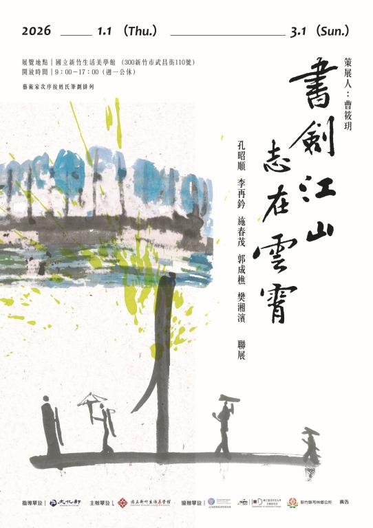 文化部所屬國立新竹生活美學館辦理「書劍江山.志在雲霄-孔昭順․李再鈐․施春茂․郭成樵․樊湘濱聯展」,展出孔昭順、李再鈐、施春茂、郭成樵及樊湘濱五位資深藝術家創作約50件,於115年1月1日開展,1月3日下午於該館「美學堂」舉行開幕式。