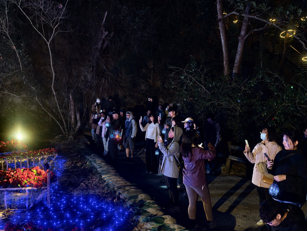 【大成報記者杜忠聰/臺南報導】第七屆「龍崎光節:空山祭」開展第二週恰逢元旦假期,儘管低溫來襲,仍吸引大批民眾前往,截至昨日累計觀展人次突破16,335人,票房有望本週末突破150萬元,山林夜色在光影與人潮交織中為新年揭開熱鬧序幕。