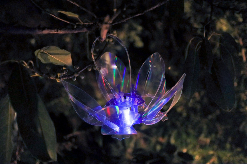 本屆標誌性的「水晶花提燈」成夜遊亮點,為全臺首款可手動開合的互動式提燈,晶透材質呼應光影作品,光線隨行走節奏流動。提燈採可回收材質製作,免費循環借用,文化局呼籲民眾遵守規範歸還,讓光影體驗共享。