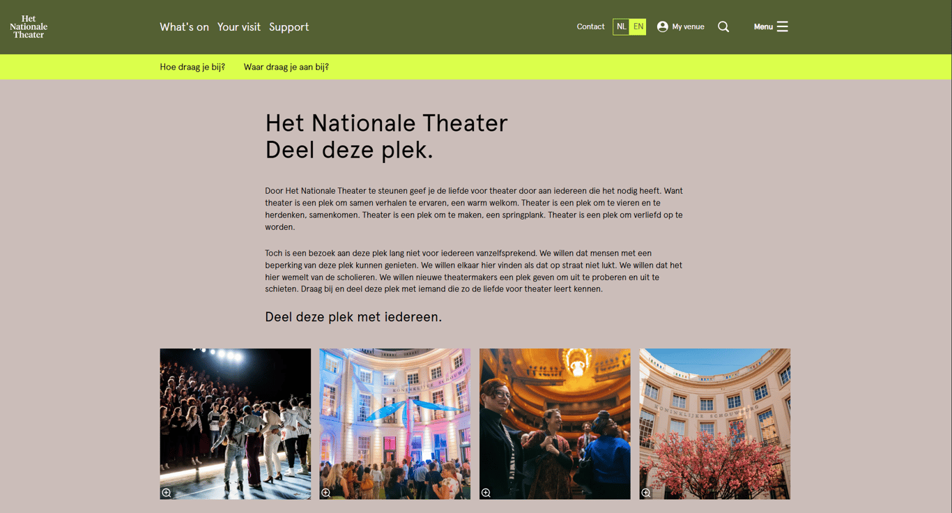 在荷蘭劇場脈絡,這是革命性的。「我還記得跟老同事聊了什麼,」De Vroed 說,「我說到我覺得國家劇院是社區里民中心的時候他幾乎要吐了。」
