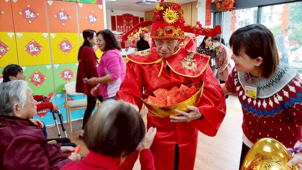 ▲九十多歲的阿樟伯扮成財神爺,象徵福氣與長壽。(圖/伸港秀和苑日照中心提供)整場活動讓來賓看見長輩們不同的樣貌與驚人的表演。絲巾在長輩們的舞動下,如同彩色波浪在空中流轉;繽紛的飄扇隨著阿姨們穩定而優雅的舞姿揮舞,交織出一道美麗的彩虹;而由工作人員親手製作的緞帶手腕花,則象徵「花開富貴、福氣滿滿」。表演的長輩即使動作不快,每一個舉手投足都充滿用心與情感,展現出「有歲數嘛有元氣」的生命力,讓現場掌聲此起彼落。