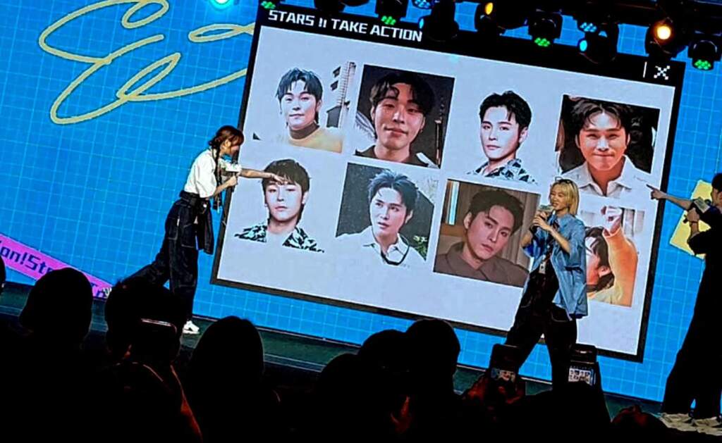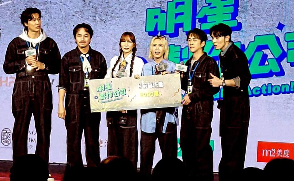 ▲曾莞婷分不清雙胞胎 展榮展瑞現場解危,黃偉晉亂猜注音居然答對。(楊珊雯拍攝)活動上也首度曝光節目宣傳影片,畫面可見六位主持群在幕後忙進忙出、身兼多職的工作狀態,從企劃討論、現場執行到臨場應變一應俱全,節奏緊湊卻不失互虧笑鬧,充分詮釋明星們苦中作樂的工作態度,楊銘威表示:「真實幕後人生就是這麼忙,不管幕前幕後,什麼工作都要做」。值得一提的是,最初給六位主群設定的KPI總流量是100萬,沒想到隨著網路節目《明星開拍中》推出後,話題持續延燒,累積總流量已正式突破2,000萬以上,成績遠超預期,眾人開心歡呼表示「KPI到了,之後節目可以隨便做了」,BOSS卻突然現「聲」宣布KPI正式更新為6千萬,Lulu雖怒摔成果板,卻也直接喊話目標是「破億」,展現持續挑戰自我的企圖心,也讓全場驚呼連連!