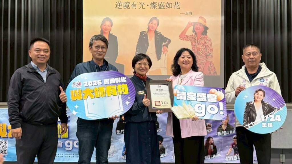 【互傳媒/記者 林明佑/彰化 報導】「2026書香彰化-與大師有約」月月都有精彩講座,與大師相約彰化,一同聆聽大師分享。1月24日在鹿江國際中小學活動中心,邀請金鐘影后王琄,以「逆境有光 燦盛如花」為題,分享自己從舞台到人生的深刻省思,由文化局秘書葉婉雪代表彰化縣長王惠美與會,並頒發感謝狀,演講吸引眾多民眾參與。