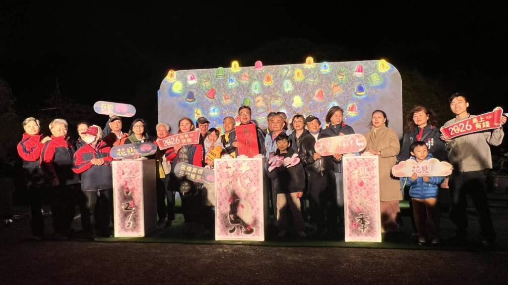【互傳媒/記者 陳德儀/新北市 報導】2026花見櫻花季今(29)日晚間於新北淡水無極天元宮由新北市副市長劉和然到場進行點燈儀式,並與淡水在地「身聲擊樂團」的熱鬧開場下,宣告年度春季賞櫻盛事正式啟動。今(115)年更邀請國際學生參訪體驗賞夜櫻,由外國人的視野來看臺灣春季賞花文化外,亦首度與國際知名繪本藝術家幾米的《閉上眼睛一下下》合作,除了將繪本場景搬進櫻花林,結合淡水天元宮最獨特的三色櫻打造5座互動場景,並推出「淡水花見散策攻略All in One」摺頁以及各式週末DIY工作坊與「櫻花慢旅」走讀活動等,邀請大家即日起至2月11日止,一同來淡水天元宮感受櫻花魅力。