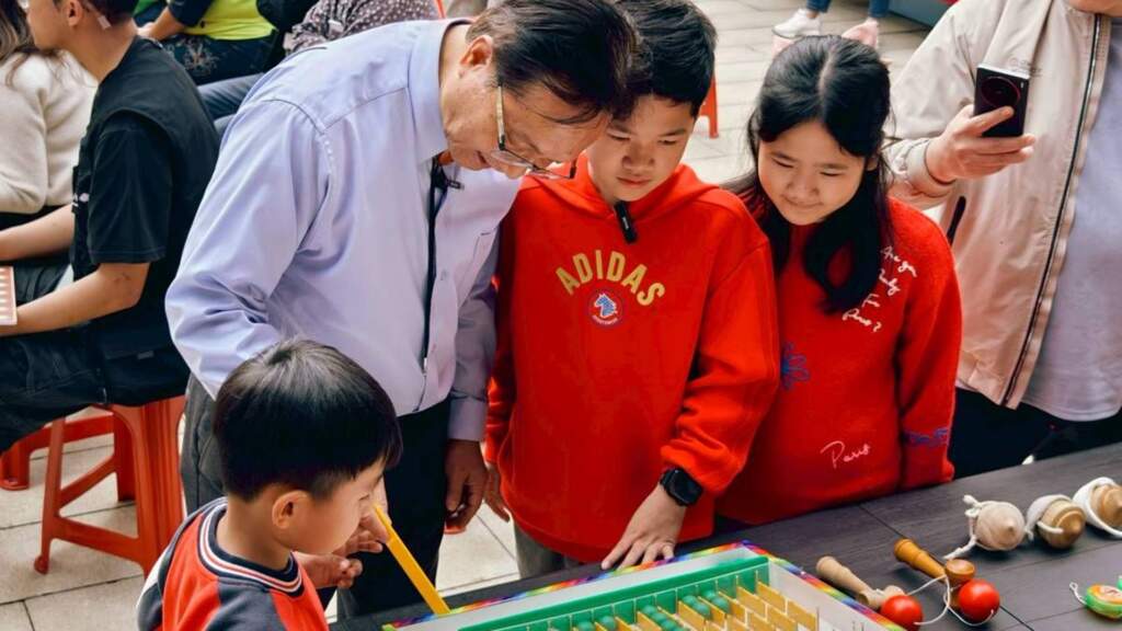 ▲林世賢市長和小朋友玩彈珠童玩。(圖/記者林明佑翻攝)包含永樂街慶安宮廟口「那卡西」經典重現、民族路市集的「闖關活動」以及和平路1巷、小西商圈及高賓閣「光雕秀」及年節主題表演活動,活動時間下午14時至晚上21時。除夕當日,永樂街活動特別延長至晚間23時,讓民眾白天拜廟宇、晚上踅夜市,感受彰化特有的懷舊新春氛圍。