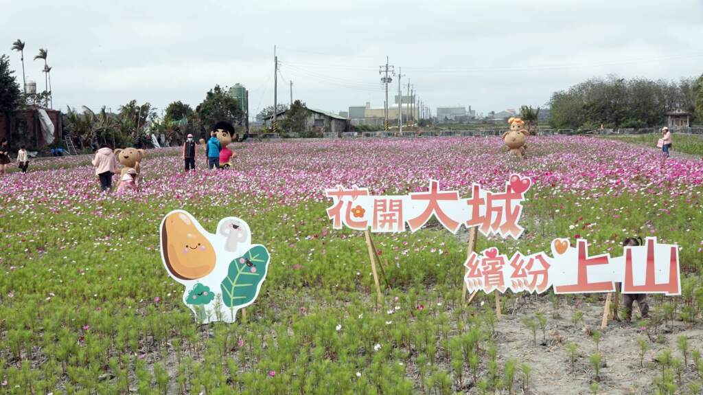 【互傳媒/記者 林明佑/彰化 報導】為活絡地方觀光、推廣農村特色,彰化縣大城鄉公所今(31)日上午在上山富安宮舉辦「2026彰化縣大城鄉花海生活節—花開大城‧繽紛上山」活動,結合花海美景、藝文表演、小農市集與宗教文化,吸引不少民眾前來賞花、拍照、逛市集,感受農村節慶氛圍。