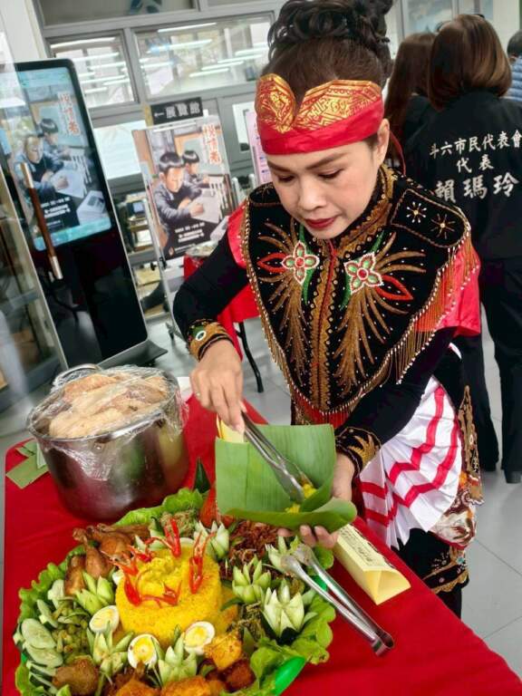 現場安排印尼舞蹈、香蕉葉編餐盤體驗,並提供七國特色美食品嚐活動。(記者廖承恩翻攝)發表會中,除分享繪本創作歷程與生命故事外,現場亦安排印尼傳統舞蹈演出,並規劃「香蕉葉編餐盤」文化體驗活動,同時提供七國特色美食品嚐。文化觀光處表示,期盼透過閱讀、藝術與文化體驗,讓更多民眾親近多元文化,在雲林感受不同族群共融共好的溫暖力量。