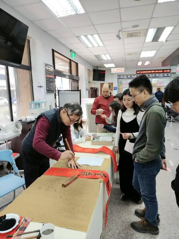 活動現場紅紙高掛,墨香四溢,吸引不少民眾攜家帶眷前來排隊索取春聯。民眾仔細挑選象徵平安、吉祥與順遂的字句,提前為家中增添濃濃年節喜氣。透過一筆一畫的揮毫書寫,傳統書法文化不僅走進日常生活,也讓新春祝福在社區中流動。
