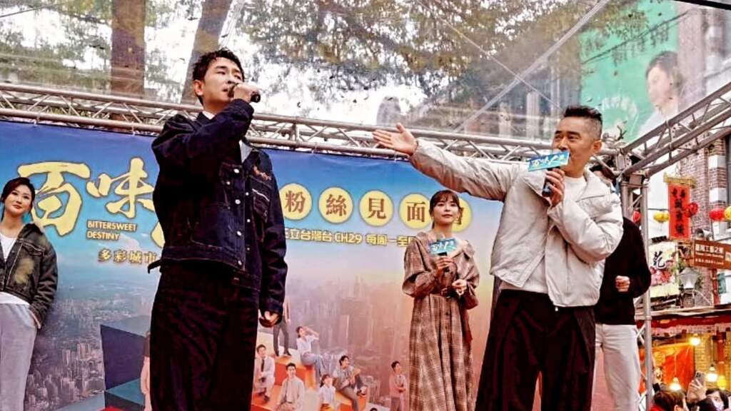 ▲三立台劇《百味人生》大稻埕粉絲見面會寵粉無極限(楊珊雯拍攝)活動安排「酸甜苦辣抽籤答題」、「情侶默契考驗」等趣味關卡,演員挑戰真心話大冒險、甜蜜對視與台語情話橋段,更大方擺出指定姿勢回饋粉絲,笑料百出。粉絲也上台參與有獎徵答,獲得演員親筆簽名紅包袋,將現場氣氛推至最高潮。活動尾聲,江國賓與陳謙文合唱〈百味人生〉,為見面會畫下溫馨句點,眾人齊聲向觀眾拜年,感謝一路相挺。