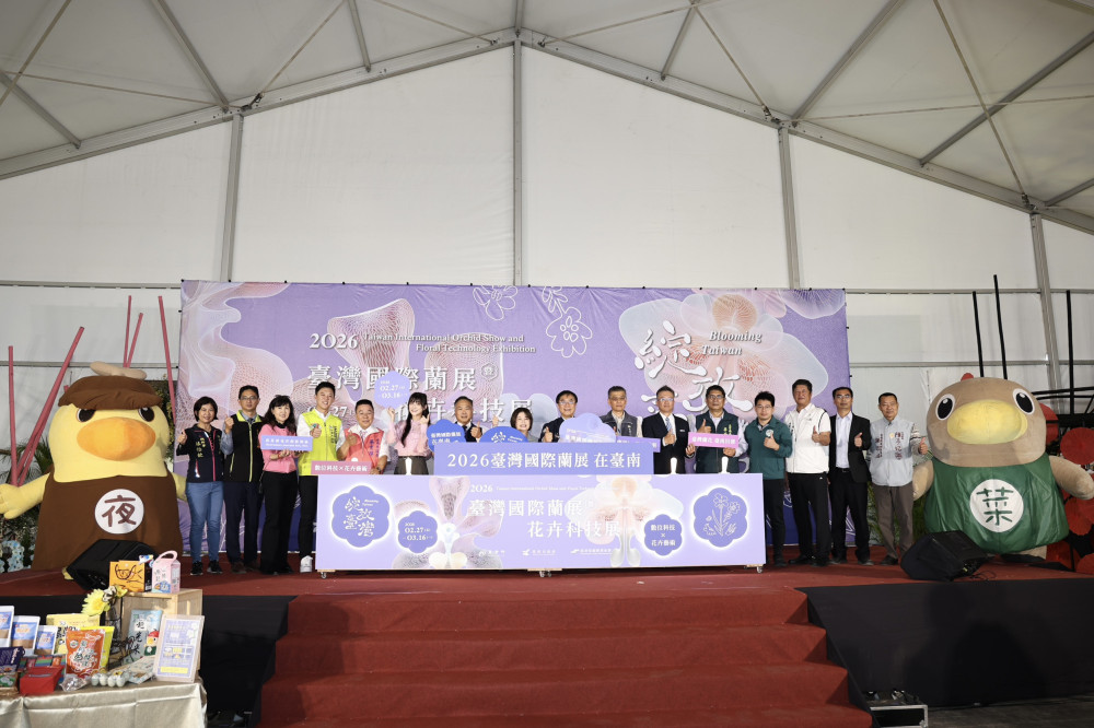 【大成報記者杜忠聰/臺南報導】全球蘭花產業盛事「2026台灣國際蘭展暨花卉科技展」將於2月27日至3月16日在台南後壁「農業部花卉創新園區」盛大登場。台南市長黃偉哲25日偕同宣傳大使林逸欣及吉祥物「菜奇鴨」、「夜奇鴨」出席展前記者會,搶先揭開本屆結合AI科技、人文藝術與裸視3D影像的夢幻展演,展現台灣蘭花如「台積電」般的國際競爭力。
