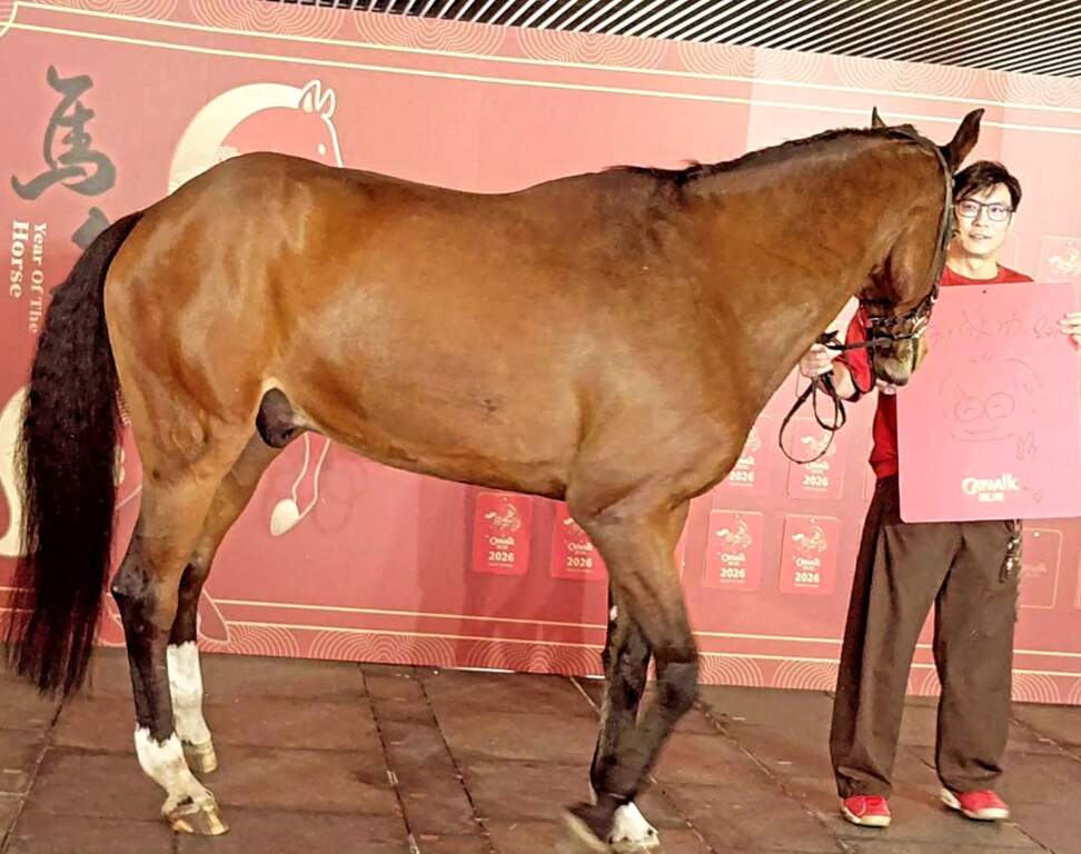 ▲凱渥集團董事長吳鋒(楊珊雯拍攝)活動剛開始,一匹氣勢非凡的真實駿馬昂首踏入會場,蹄聲清脆迴盪,為今日開工揭開序幕,全場驚呼聲此起彼落。駿馬象徵馬年開工「馬到成功」的好兆頭,寓意新年開局強勢啟動,鎂光燈隨即閃個不停,為活動揭開霸氣十足的序幕。