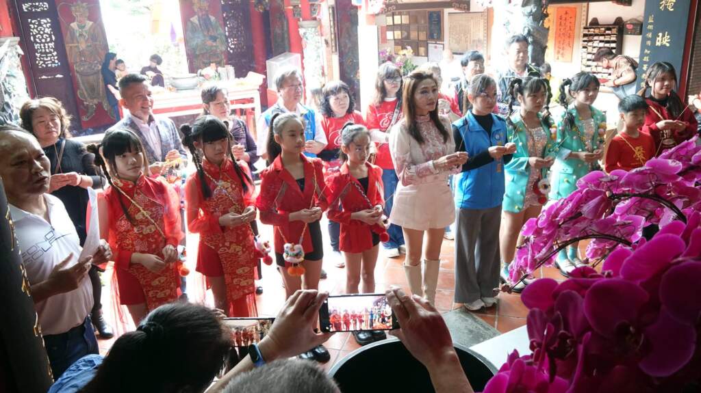 ▲教唱女神楊惠絜帶領8位小歌手與縣議員蕭妤亘等人向清水岩寺神祇釋迦牟尼佛與南海觀世音上香禮拜。(圖/記者林明佑攝)楊惠絜本身具備音樂系本科背景,主修鋼琴與琵琶,不僅是中部知名的歌唱老師,更曾指導多位選秀節目小歌手脫穎而出。在教唱生涯邁入20周年之際,她除了認購燈籠,更積極帶領學生參與各類公益演出,如為瑪喜樂社福基金會籌款等。她希望透過自己的影響力,讓更多人關注弱勢童的就學需求,讓這份累積12年的燈籠愛心,在春節寒冬中溫暖每一位家扶兒少的心。