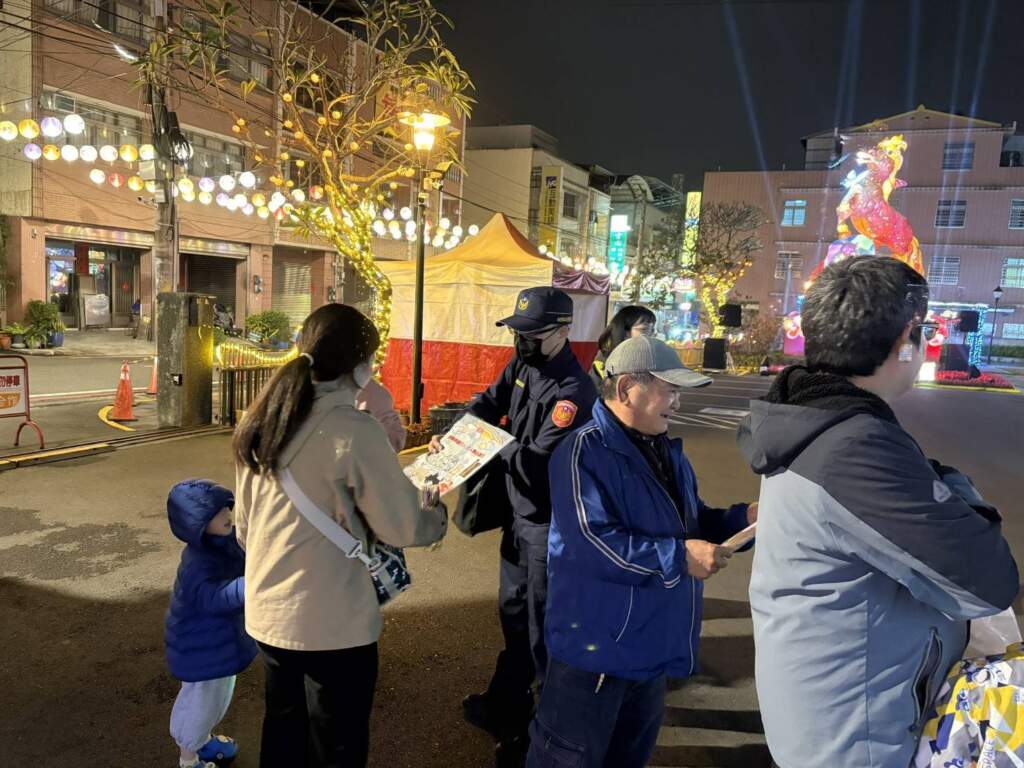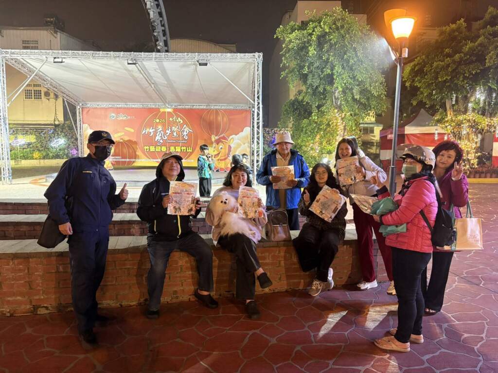 【互傳媒/記者 蘇彩娥/南投 報導】農曆正月十五元宵佳節,燈火璀璨、人潮湧動。為強化春節尾聲交通安全宣導,南投縣政府警察局竹山分局特別走入「2026竹山竹藝燈會」會場,以及竹山連興宮慶祝元宵踩街祈安活動現場,發放「2026臺灣燈會-喔熊馬抵嘉」紙雕小提燈,與賞燈民眾近距離互動,在歡樂氣氛中傳遞交通安全觀念。
