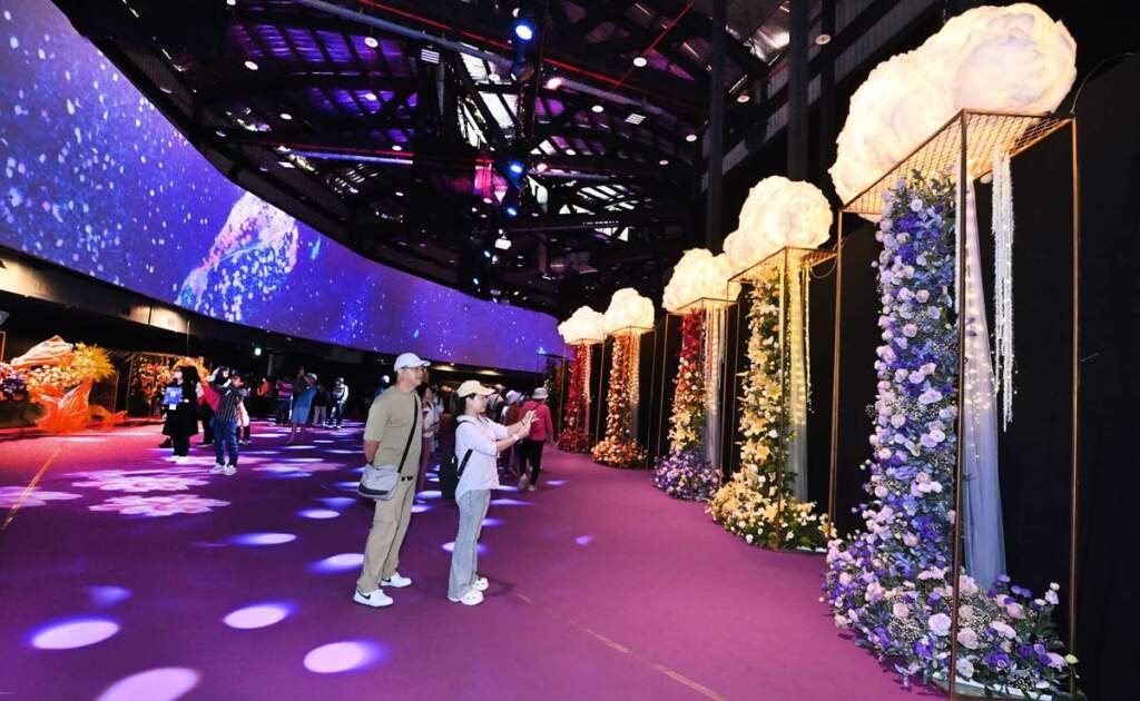 ▲2026台灣國際蘭展,白天賞花、晚上逛燈會。(張玉泰攝)「2026臺灣花卉科技展」以科技藝術,整合AI智慧科技、互動式敘事、沉浸式影像與3D投影等技術,重新詮釋臺灣花卉的當代價值與國際潛力,此次展覽特別展現台灣在科技育種上的領先優勢,透過結合莫內、梵谷等名畫家作品的「噴墨蘭花」,同時讓國際看見台灣花卉的軟實力與競爭力。