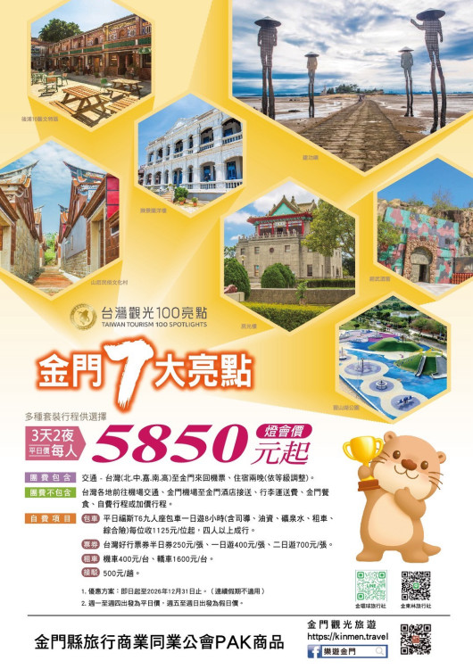 為讓燈會人潮轉化為實際旅遊動能,活動期間(3月3日至3月15日)金門旅行業特別組PAK聯盟,推出超值「機+酒」自由行產品,主打彈性行程與多樣選擇,吸引更多旅客安排金門之旅。