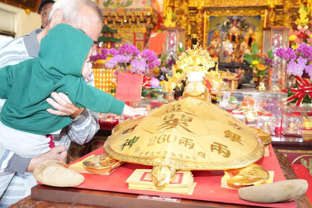 ▲摸龜殼,事業穩達達。林皆興表示,「澎湖上元乞龜」不僅與「北天燈、南蜂炮、東寒單」並列為臺灣元宵四大民俗慶典,去年更成功登錄為無形文化資產。百年來的乞龜文化在信仰傳承下「越乞越大」,從早期的「肪片龜」,到現在的米龜、黃金龜、高麗菜龜等創新樣貌,展現澎湖民間信仰的生命力與文化演變軌跡。