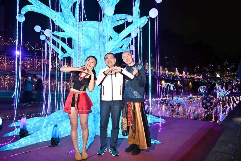 ▲新莊年度盛事中港大排光雕展3月6日至29日點亮河廊,今(115)年以「星耀中港 夢幻星河」為主題,營造一條屬於中港大排的夢幻星河,迎接即將到來的白色情人節。侯友宜表示,中港大排光雕展邁入第6年,今年運用超過300萬盞LED燈點亮河廊,打造高達7米的立體發光裝置「星耀之樹」,讓中港大排化身浪漫夢幻星河,歡迎市民朋友一起來感受浪漫又溫馨的氛圍。侯友宜說,光雕展演去年獲得「美國繆思設計獎照明設計類金獎」、「羅馬設計獎照明設計類白金獎」與「倫敦設計獎概念設計類白金獎」三項國際獎項肯定,並吸引超過66萬人次造訪,期待今年造訪人次再創新高,讓更多國內外民眾認識新莊、認識新北。