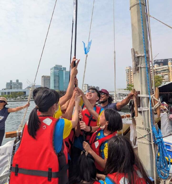 ▲學生親自體驗操作升帆、降帆。(圖/海委會)「無私分享號」傳遞尊重自然與守護海洋的價值觀