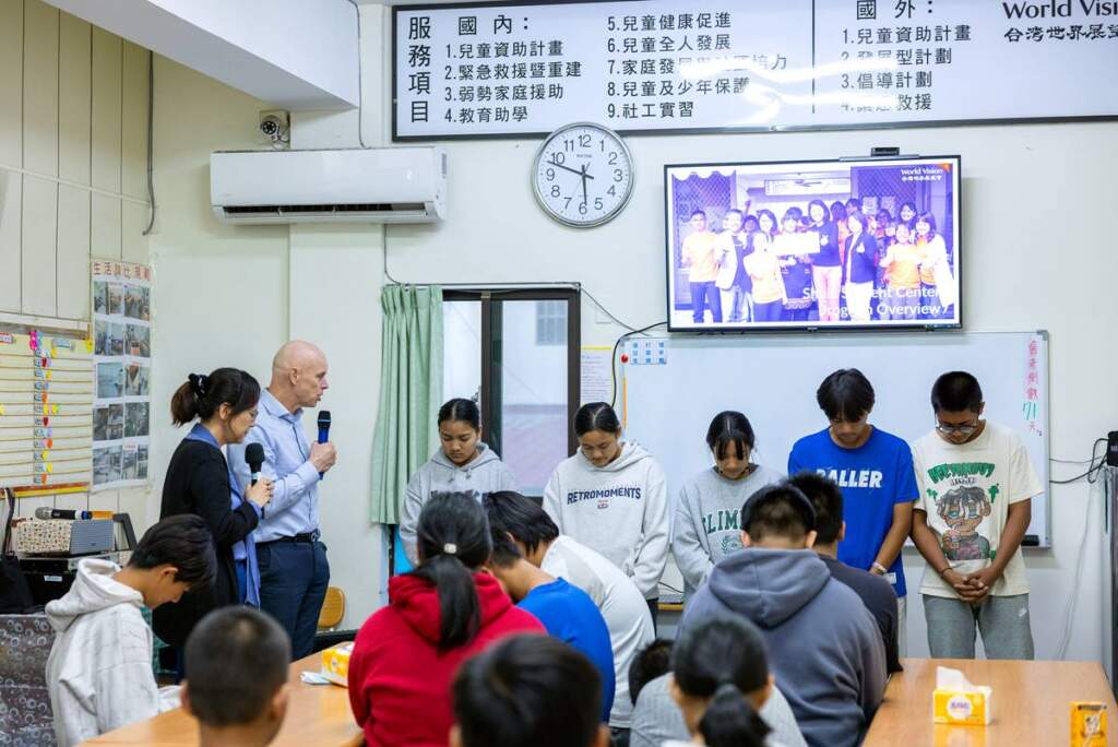 此行安德魯特別前往展望會成立的水里學生中心,關心離家在外求學的住宿學生。住宿生小翰分享家住深山,上學往返車程需兩小時,學生中心讓他省下大量通勤時間與交通、外宿費用,減輕父母養育三個孩子的重擔,「這裡提供的英文與數學課輔班,讓我的成績從中後段進步到前三名,加上可以穩定用餐,我長高了5公分!」他笑說,在學生中心能擁有專屬的書桌和床,更因團體生活學會整理環境、為彼此打菜盛飯,「回家時爸媽都驚訝我變懂事了。」展望會的學生中心讓住得偏遠的孩子能在生活輔導員陪伴下穩定就學,而安德魯除了共同為一到三月壽星慶生,也為即將參加會考的國三孩子祝福禱告。