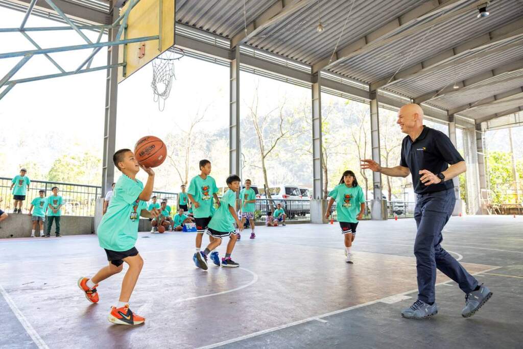 ▲世界展望會國際總裁 Andrew Morley 訪視南投信義鄉原鄉部落,與東埔國小合唱團、籃海計畫孩子及「原鄉蔬菜箱」家庭互動,透過孩子的夢想與部落家庭的生命力,看見台灣最美的風景。(圖/世界展望會提供)他在地利村遇見展望會「籃海計畫」支持的信義夢幻隊,和長期在籃球隊接受訓練、培養品格的孩子以三分球大賽與三對三鬥牛切磋球技。由於展望會發現當地家庭經濟壓力大、脆弱度高,特別在個案服務外為青少年成立籃球隊,透過教練與社工員的帶領與定期訓練,陪伴孩子從團體中找到歸屬、自信與一起正向成長的夥伴。這群愛打球的孩子主動邀安德魯當隊友、下場比賽,並表達未來想朝職業球員、教練發展的渴望,安德魯鼓勵他們勇敢追夢,還分享拉單槓重訓的個人密技。