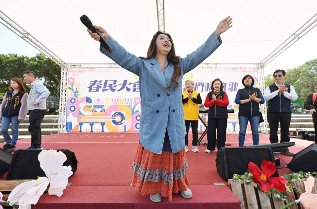 ▲林隆璇演唱。縣長夫人陳美琦、頭份市長羅雪珠、副議長張淑芬及地區議員、代表們也到場與鄉親同樂,共度一個愉快、溫暖的午後時光。