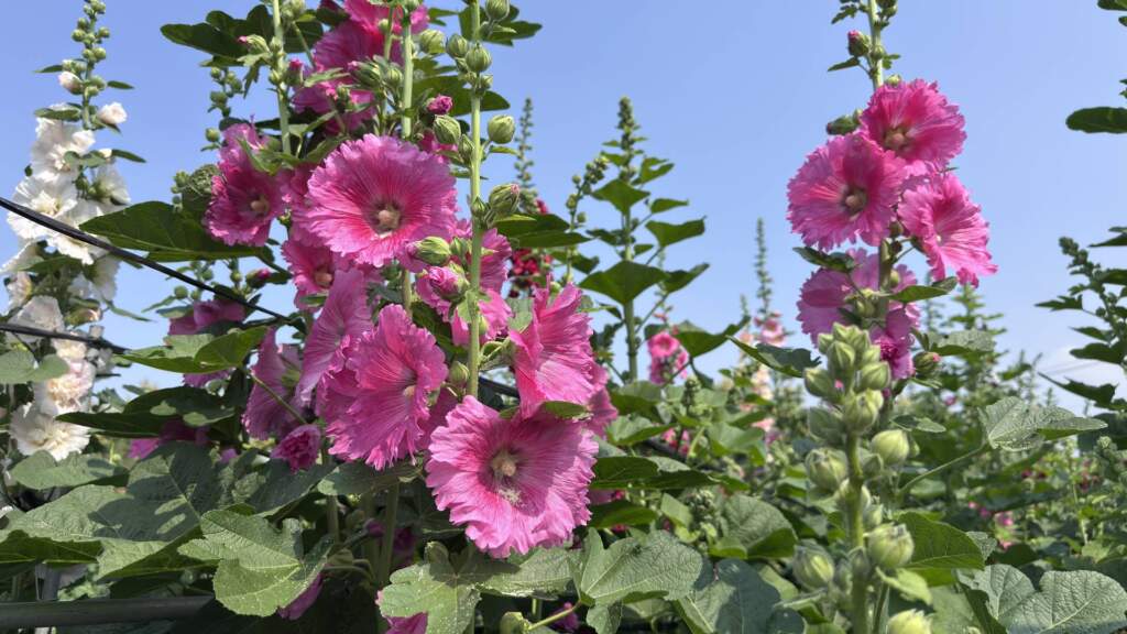 ▲蜀葵花因花序向上生長,最高可達2公尺以上,又稱「一丈紅」或「花中巨人」,壯觀花海成為地方春季重要景觀。(圖/記者林明佑攝)賴致富表示,特別感謝彰化縣長王惠美及彰化縣議會於經費的挹注,以及員林市民代表會主席張國良暨全體市民代表對於預算與政策面的全面支持。同時也感謝大明社區熱心規劃活動與假日展演。並獲得琉璃仙境休閒農場、百果山探索樂園的熱情贊助,於開幕當日限量發放200張百果山探索樂園入場券,及活動期間之周末及清明假期間皆會發放琉璃仙境休閒農場限量300張門票。
