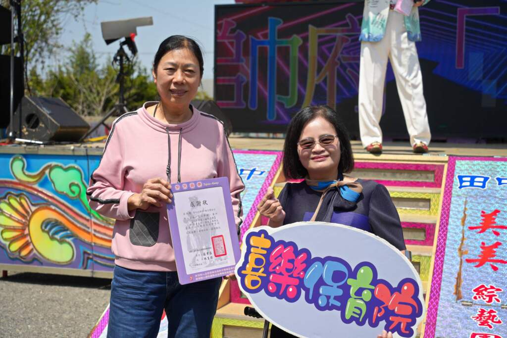 田尾小作所的智青們用歡騰舞步演出「豐收鑼鼓」,為午宴揭開熱鬧序幕。隨著一道道經典的辦桌手路菜上桌,院區頓時香氣四溢。對於喜樂許多需仰賴輪椅代步或俱特殊照顧需求的服務對象而言,外出用餐實屬浩大工程,而元帥府這份體貼,直接將美味與熱鬧宅配進喜樂。看見熟悉院區架起棚子、擺滿大紅圓桌時,那種「專門為我們開席」的新奇與被重視的尊榮感,使服務對象深刻感受最真實的社會關懷,也讓這頓飯吃起來更有滋味。