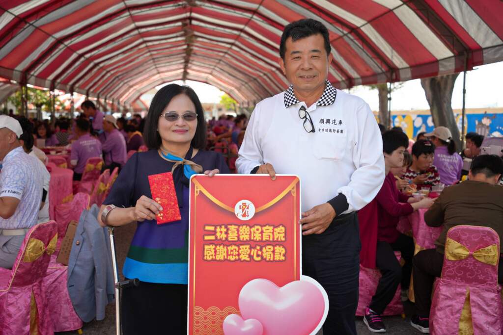 ▲十方功德行善團團長陳永聰愛心捐款。(圖/喜樂保育院提供)喜樂保育院林玉嫦院長感動言道:「如果要帶領幾百位身障服務對象外出用餐,在交通、安全以及人力資源安排,實在是需要勞心費力。阿熒姐與元帥府團隊不僅出錢出力,更設身處地為喜樂著想,促成了連續3年的喜事。這份細膩的愛,讓喜樂師生不僅嚐在嘴裡,更暖在心頭。這場充滿台灣人情味的午宴,再次為元帥府與喜樂的公益情緣寫下動人的一頁。」