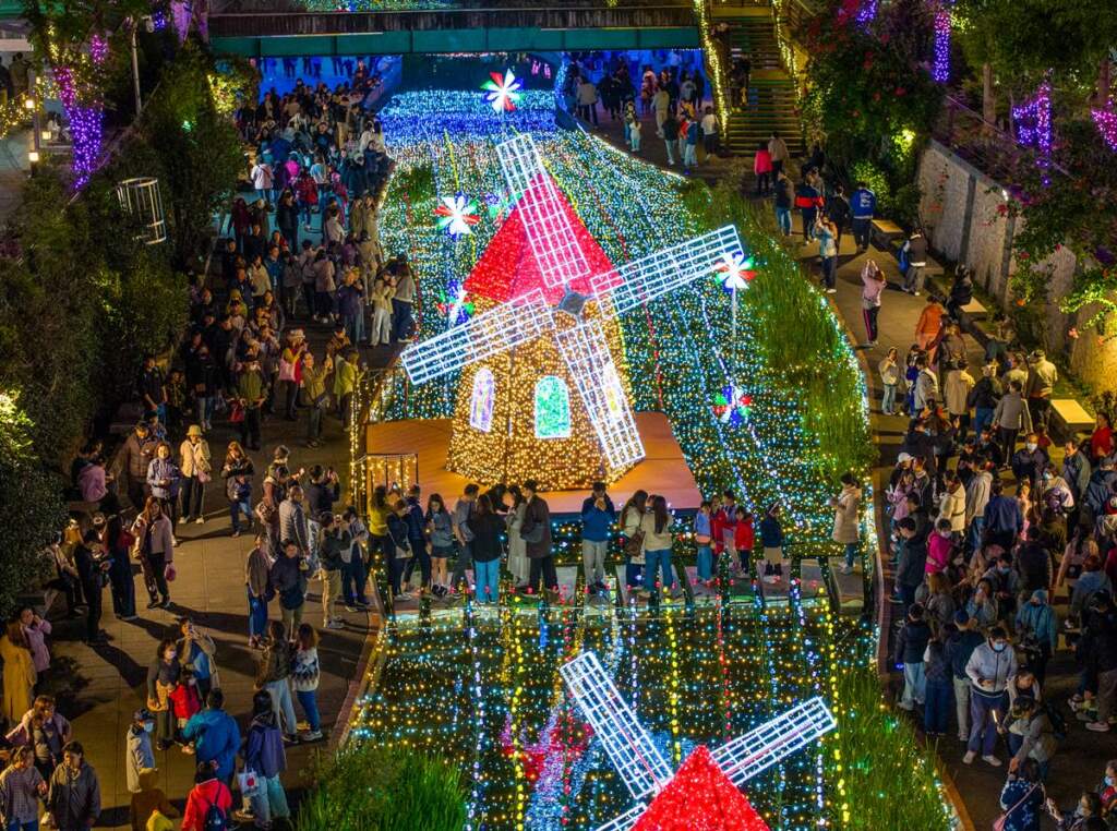 ▲中港光雕展開幕僅兩週參觀人潮已突破58萬人次創下佳績。住在中港大排附近的居民王小姐開心地說:「光雕展開幕後,這裡每天晚上都好多人,河廊裝飾得好漂亮、好熱鬧。尤其是看到企鵝遇見北極熊的畫面真的太有趣了,這種『跨越南北極圈同框』的創意非常有意思,還有充滿濃厚異國氛圍的風車造景,讓人彷彿一秒飛到荷蘭。看著現在的中港大排,對比二十年前的樣貌,簡直是脫胎換骨,真的改變太大了,美到讓人想一來再來,絕對值得特地造訪,親自感受這份驚喜。」